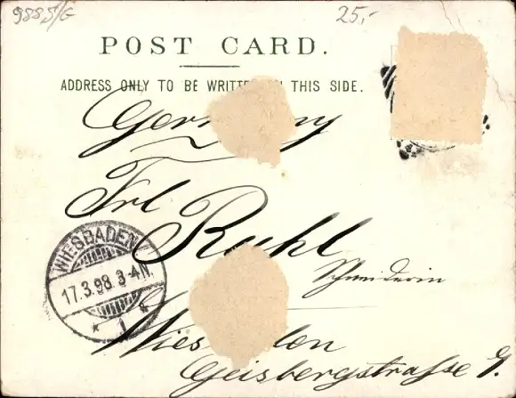 Zustand, siehe Scan, gelaufen, 1898 - ca 12 cm X 9 cm