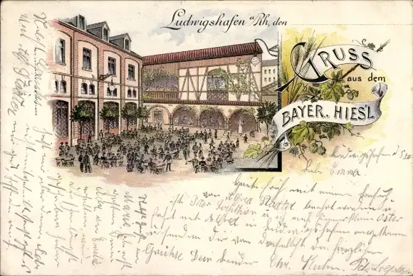 Litho Ludwigshafen am Rhein, Gastwirtschaft Bayer. Hies'l