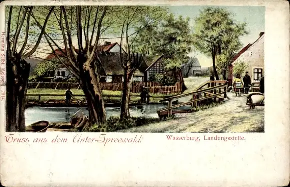Litho Lübben im Spreewald, Wasserburg, Landungsstelle