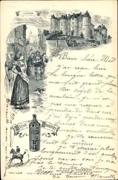 Litho Luynes Indre et Loire, Werbung für Elixir Combier, Schloss