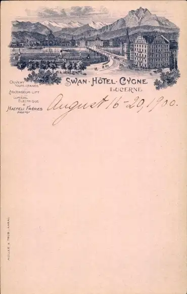 Litho Luzern Stadt Schweiz, Hotel Schwan