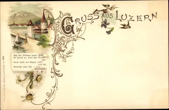 Litho Luzern Stadt Schweiz, Pilatus, Teilansicht der Stadt