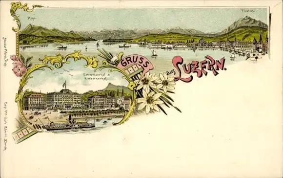 Litho Luzern Stadt Schweiz, Schweizerhof, Luzernerhof