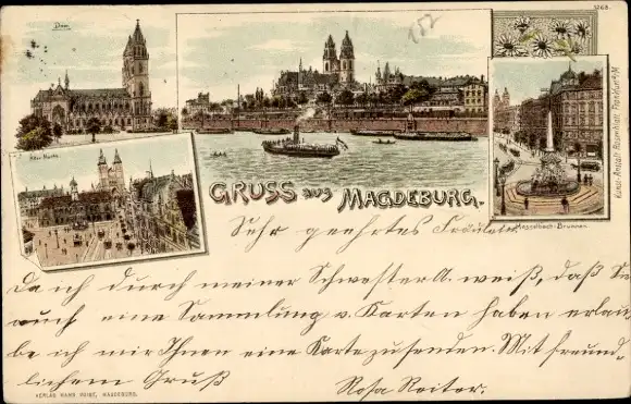 Litho Magdeburg an der Elbe, Dom, Marktplatz, Brunnen, Stadtpanorama
