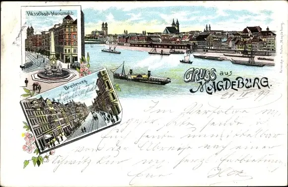 Litho Magdeburg an der Elbe, Hasselbach Monument, Breiteweg
