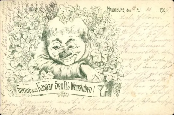 Litho Magdeburg an der Elbe, Kaspar Senft's Weinstuben