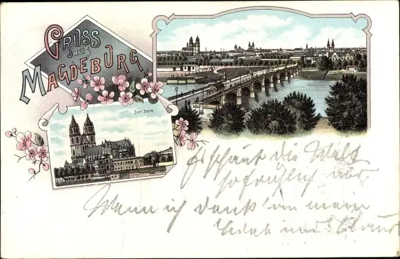 Litho Magdeburg an der Elbe, Stadtpanorama, Dom