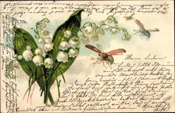 Litho Maiglöckchen und Maikäfer