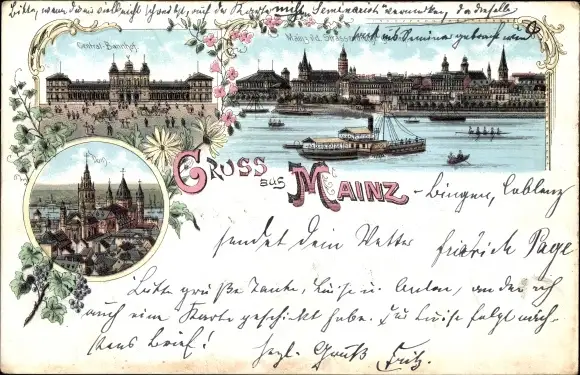 Litho Mainz am Rhein, Dom, Zentralbahnhof, Stadtansicht