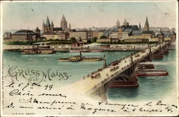 Ansichtskarte, Postkarte, Brücke, Brücken, Mainz