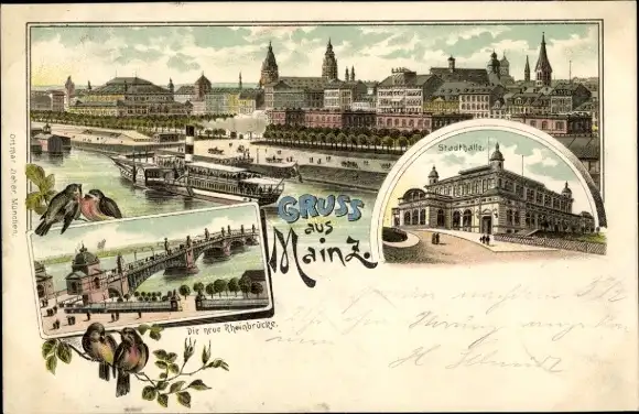Litho Mainz am Rhein, Stadthalle, Rheinbrücke