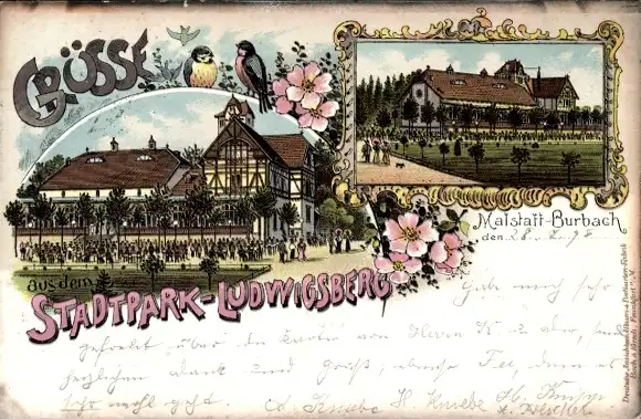 Litho Malstatt Burbach Saarbrücken im Saarland, Stadtpark Ludwigsberg
