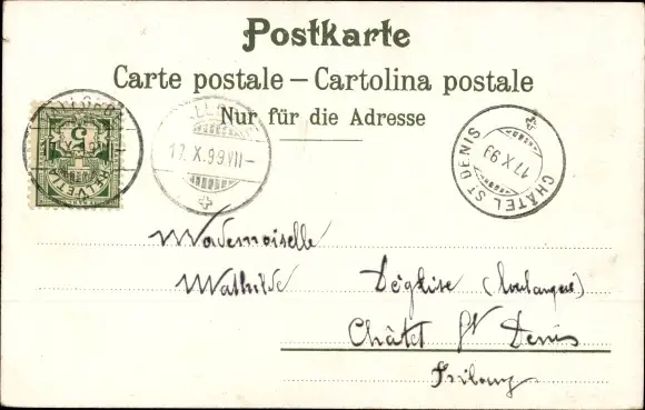 Zustand, siehe Scan, gelaufen, 1899 - ca 14 cm X 9 cm