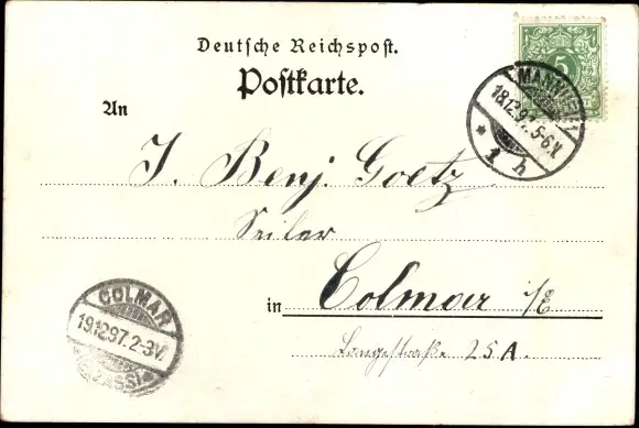 Zustand, siehe Scan, gelaufen, 1897 - ca 14 cm X 10 cm