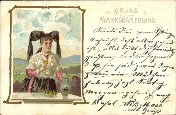 Litho Markgräflerin, Frau in Volkstracht aus dem Schwarzwald