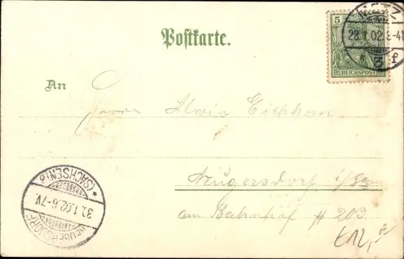 Zustand, siehe Scan, gelaufen, 1902 - ca 14 cm X 9 cm