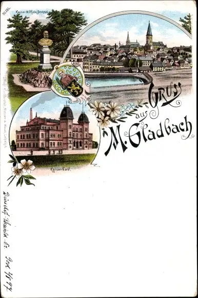 Litho Mönchengladbach am Niederrhein, Stadt, Kaiser Wilhelm Denkmal, Kaiserbad
