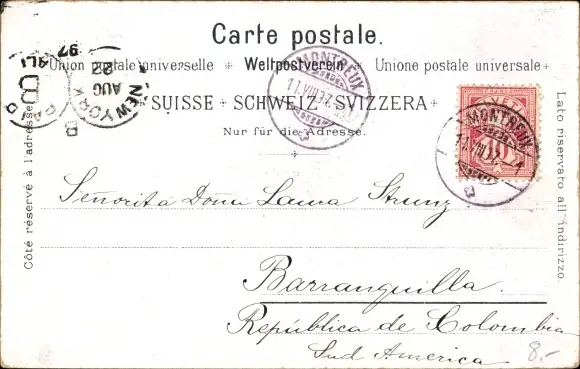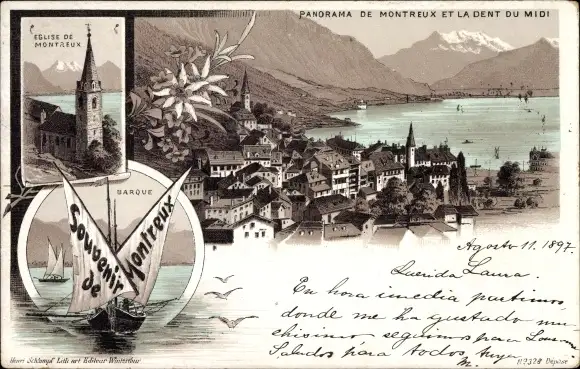 Litho Montreux Kanton Waadt Schweiz, Eglise, Panorama, Dent du Midi