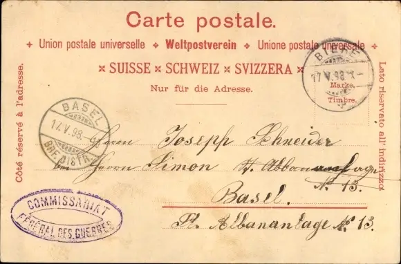 Zustand, siehe Scan, gelaufen, 1898 - ca 14 cm X 9 cm