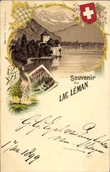 Litho Montreux Kanton Waadt Schweiz, Lac Léman, Wappen