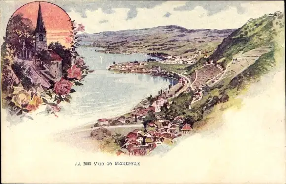 Litho Montreux Kanton Waadt Schweiz, Panorama, Kirche
