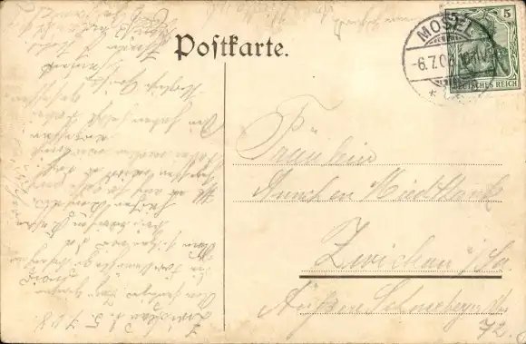 Zustand, siehe Scan, gelaufen, 1908 - ca 14 cm X 9 cm