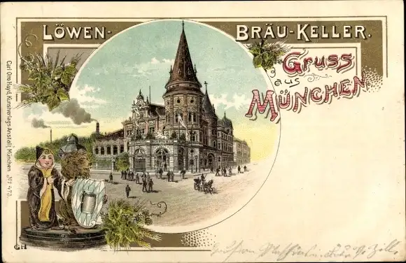 Litho München Bayern, Löwenbräukeller, Münchner Kindl