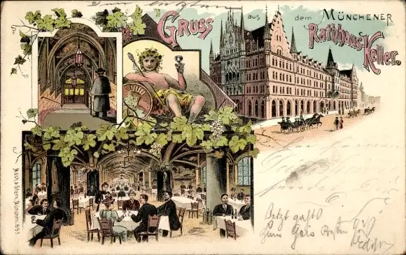 Litho München Bayern, Rathauskeller, Bacchus