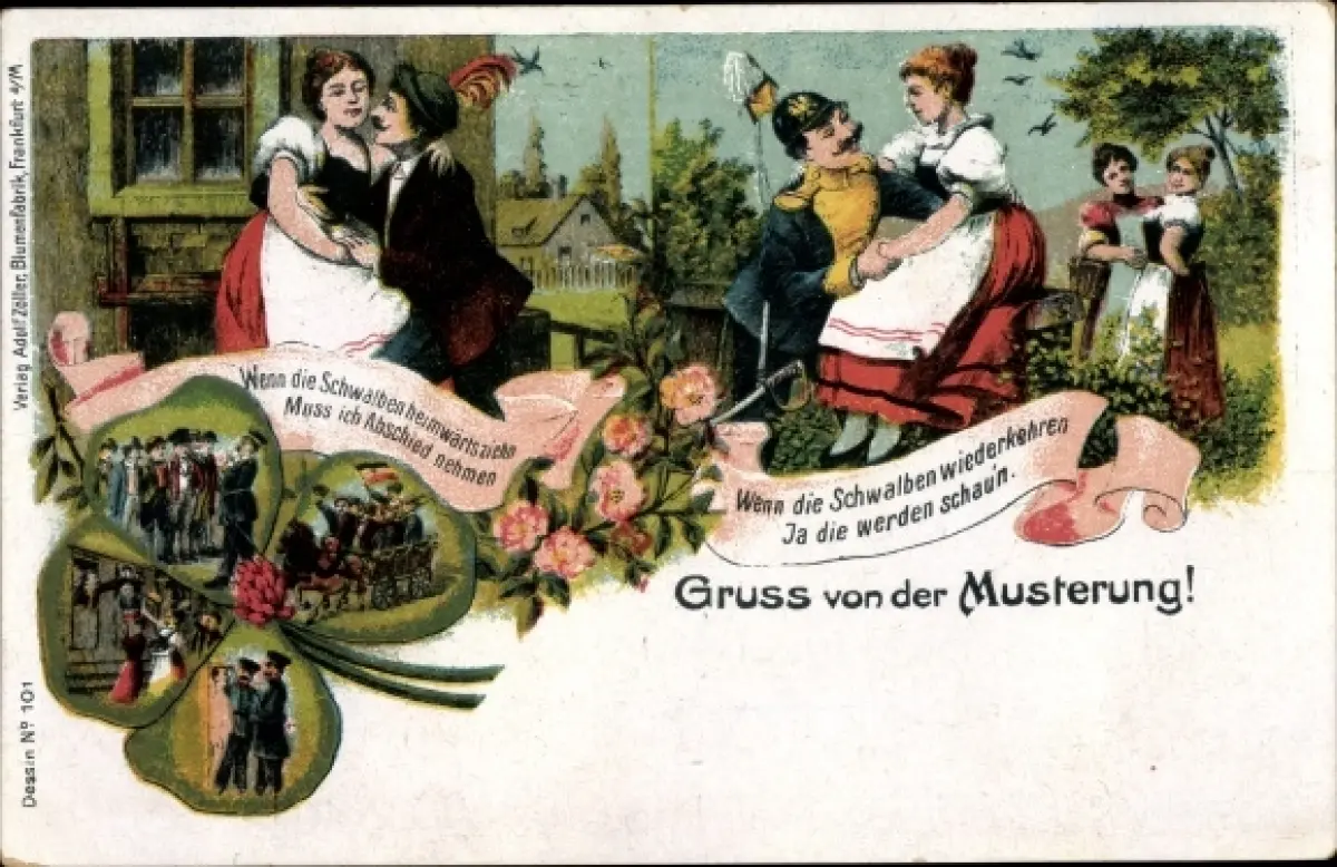 Litho Musterung, Kaiserreich, Soldatenliebe