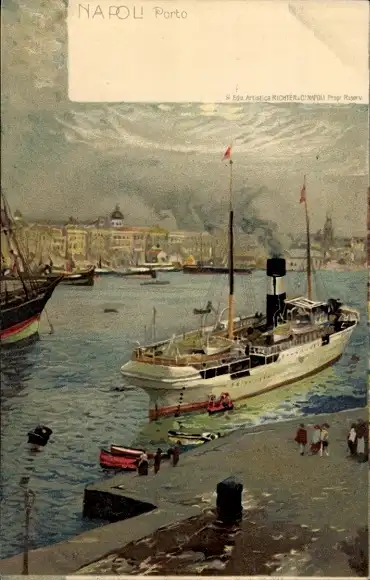 Litho Napoli Neapel Campania, Dampfer im Hafen