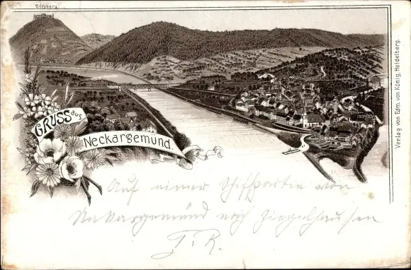 Litho Neckargemünd am Neckar, Panorama, Dilsberg