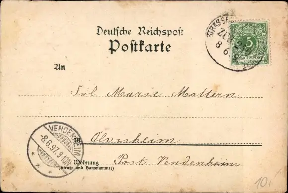 Zustand, siehe Scan, gelaufen, 1897 - ca 14 cm X 10 cm