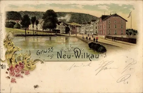 Litho Neu-Wilkau Haßlau in Sachsen, Dorfansicht