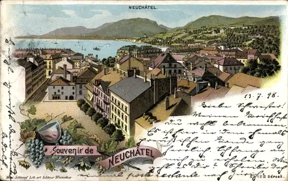 Litho Neuchâtel Neuenburg Stadt, Gesamtansicht