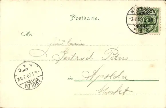 Zustand, siehe Scan, gelaufen, 1899 - ca 14 cm X 9 cm