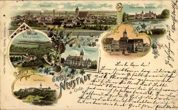 Litho Neustadt an der Orla, Totalansicht, Leuchtenburg, Schloss Hummelsheim, Marktplatz