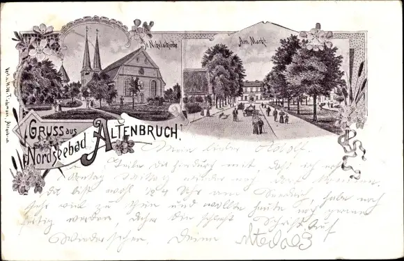 Litho Nordseebad Altenbruch Cuxhaven, St. Nikolai-Kirche, Markt