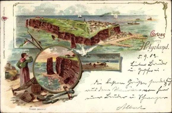 Litho Nordseeinsel Helgoland, Gesamtansicht, Nordkap