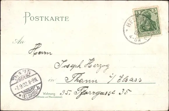 Zustand, siehe Scan, gelaufen, 1902 - ca 14 cm X 9 cm