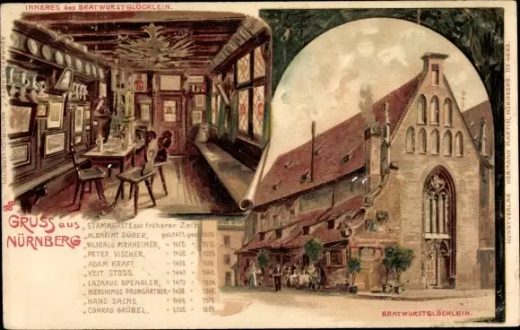 Litho Nürnberg in Franken, Gasthof Bratwurstglöcklein, Inneres, Wappen
