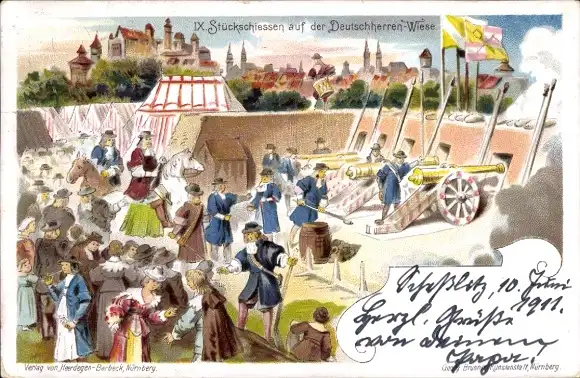 Litho Nürnberg in Mittelfranken Bayern, Stückschießen auf der Deutschherren Wiese