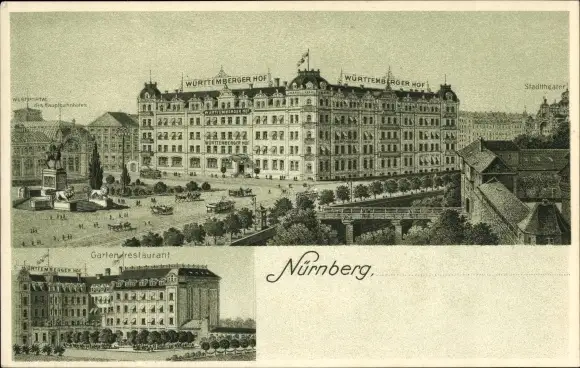 Litho Nürnberg in Mittelfranken Bayern, Württemberger Hof, Gartenrestaurant