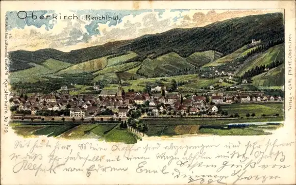 Litho Oberkirch im Renchtal Baden, Totalansicht
