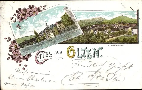 Litho Olten Kanton Solothurn, Blick auf den Ort