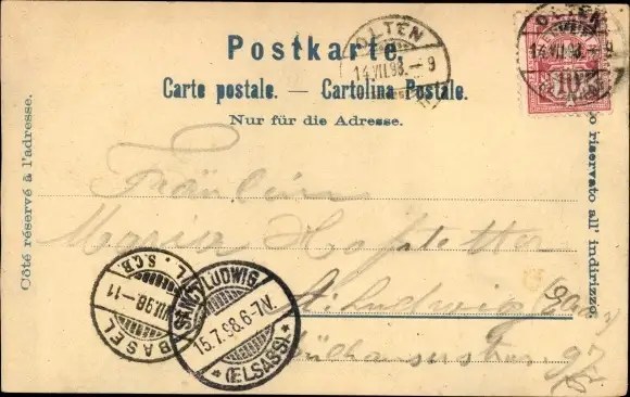 Zustand, siehe Scan, gelaufen, 1898 - ca 14 cm X 9 cm