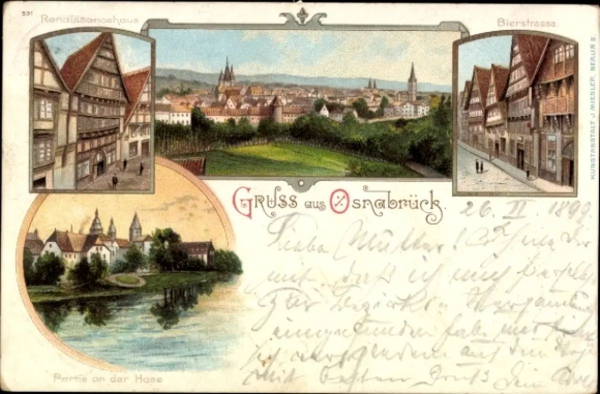 Litho Osnabrück, Hasepartie, Renaissancehaus, Bierstraße