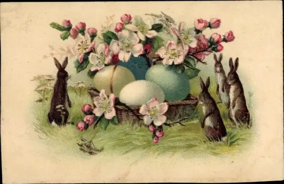 Ansichtskarte, Postkarte, Ostern, Osterhase, Frohe Ostern, Ostereier, Osterfest