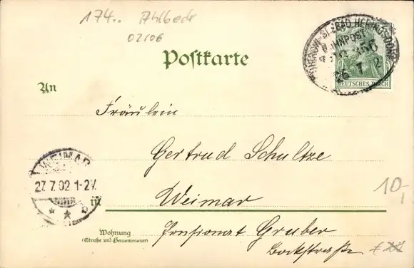 Zustand, siehe Scan, gelaufen, 1902 - ca 14 cm X 9 cm