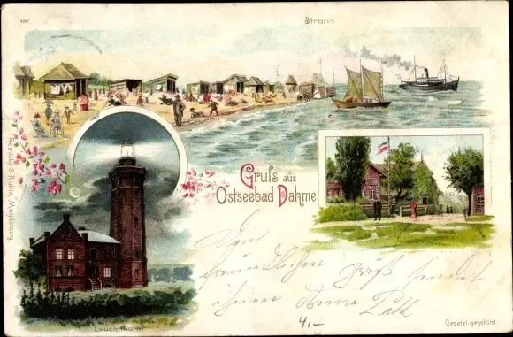Litho Ostseebad Dahme in Holstein, Strand, Leuchtturm
