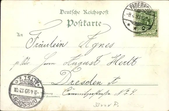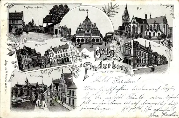 Litho Paderborn in Westfalen, Dom, Rathaus, Marktplatz, Postamt